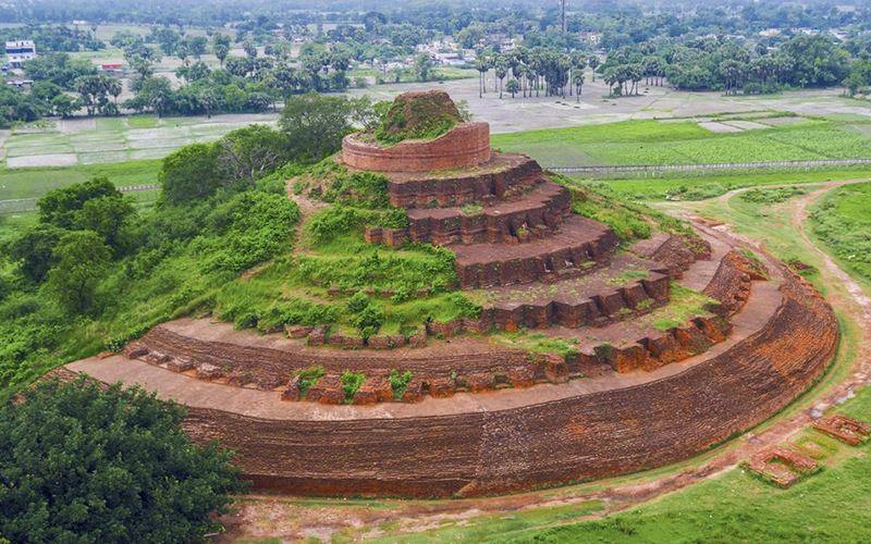 Explore Kesariya Stupa, the largest Buddhist stupa globally, located around 110 km from Bihar’s capital, Patna. With a circumference of 400 feet and a height of 104 feet, it’s a significant pilgrimage site. Locally known as Devalaya, meaning ‘house of gods,’ the stupa holds historical importance. According to Kesariya Stupa history, it’s believed that Buddha stayed here before moving to Kushinagar. Legend has it that Buddha foretold his imminent Nirvana to his disciples at this sacred spot.